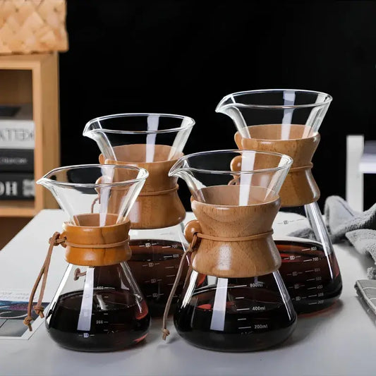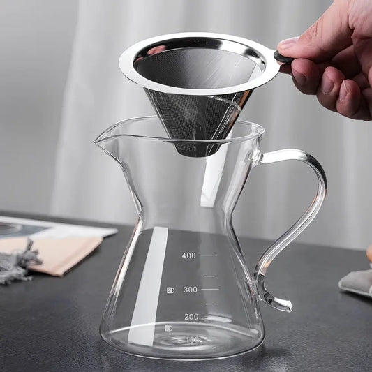 Glass Pour-Over Coffee Maker with Reusable Stainless Steel Filter – Chemex Style