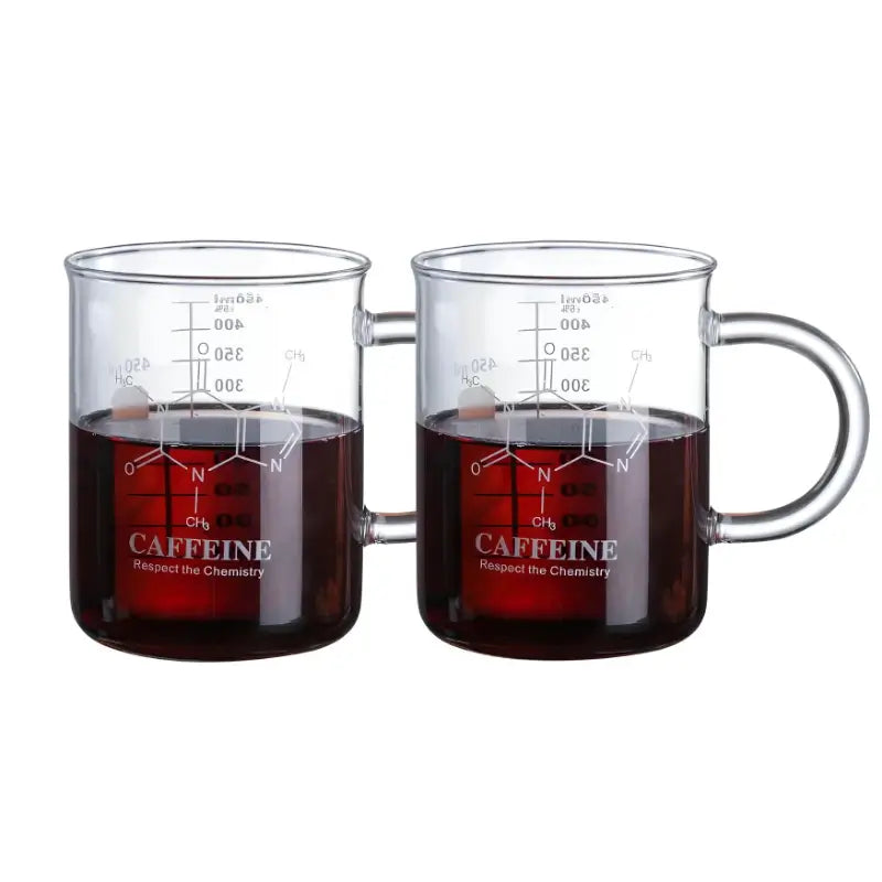 - Unique Design: Features the chemical structure of caffeine and a built-in measuring scale (in milliliters) for precise pours.