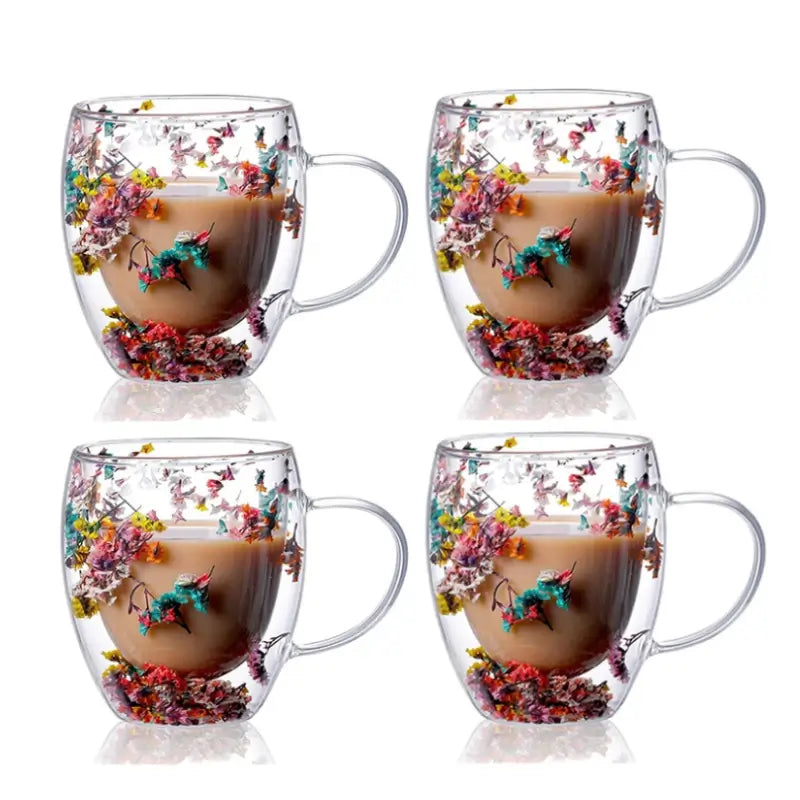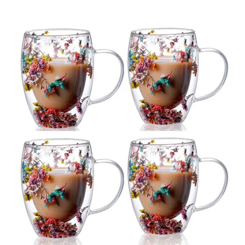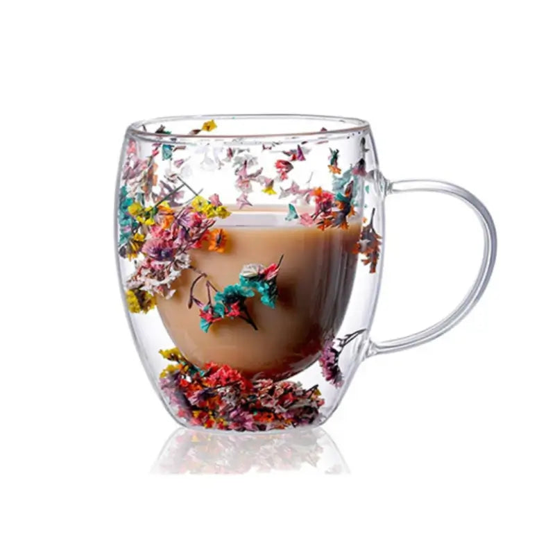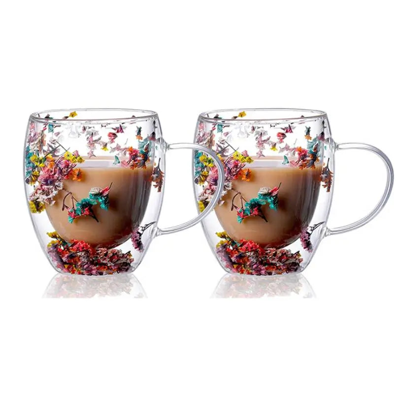 Handcrafted Double Glass Flowers Mug