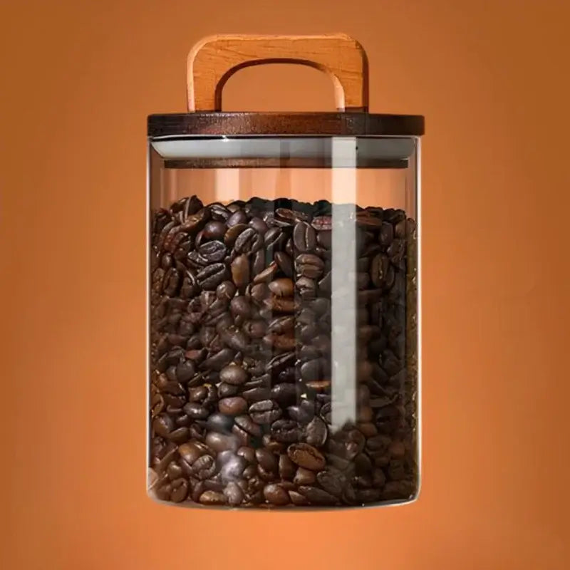 Wood Beans – Airtight Glass Coffee Storage Jar with Wooden Lid